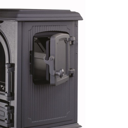 Dokonalé spalování a pohodlné přikládání i z boku kamen zvyšuje komfort užívání a velké sklo umožňuje krásný výhled na plameny. Povrchová úprava kvalitní litiny je černý matný lak. Nespornou výhodou je možnost připojení přívodu vzduchu z exteriéru a horní nebo zadní vývod kouřovodu.