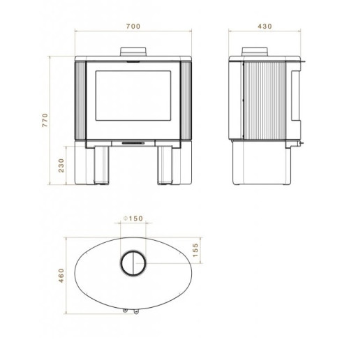 - Oválné sklo na dveřích vám zaručuje úchvatný panoramatický pohled na plameny.